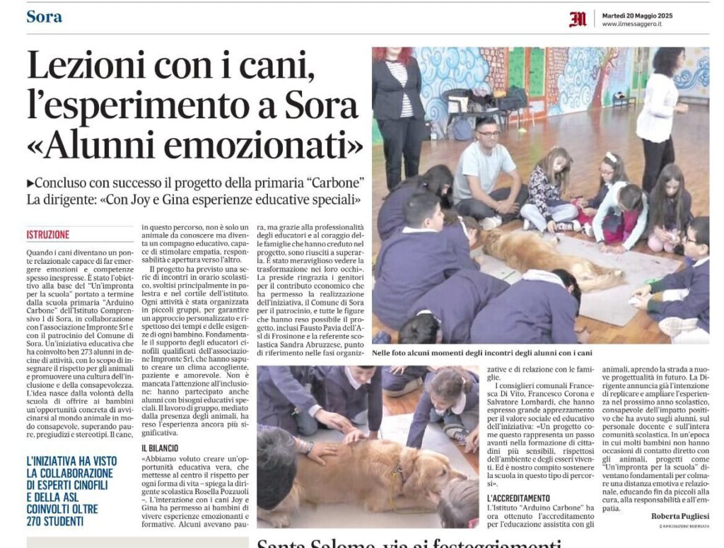 LEZIONE CON I CANI- L'esperimento a Sora (articolo IL MESSAGGERO)