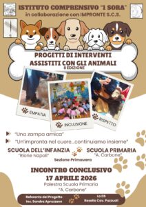Incontro conclusivo per scuola Infanzia e Primaria il 17 aprile 2026 di "Progetti di interventi assistiti con gli animali" presso palestra "A. CARBONE"